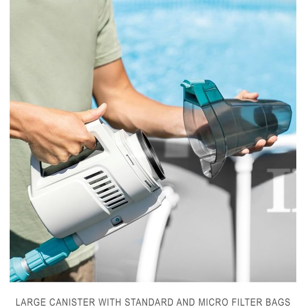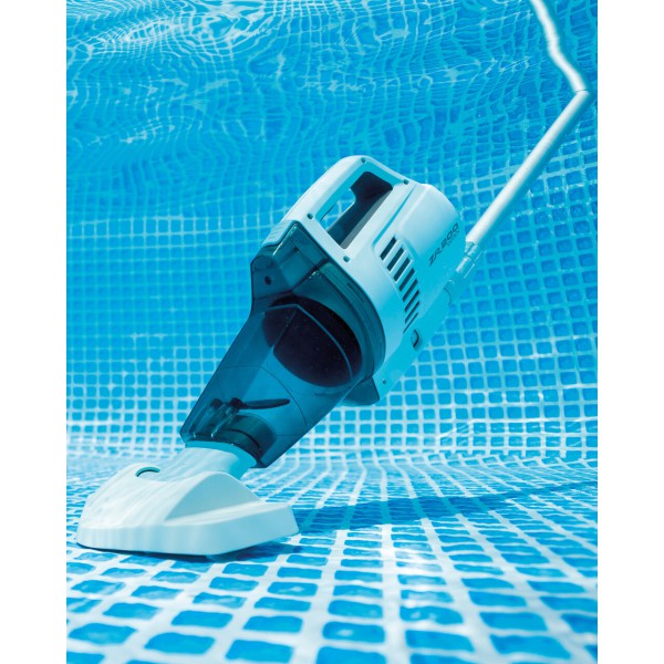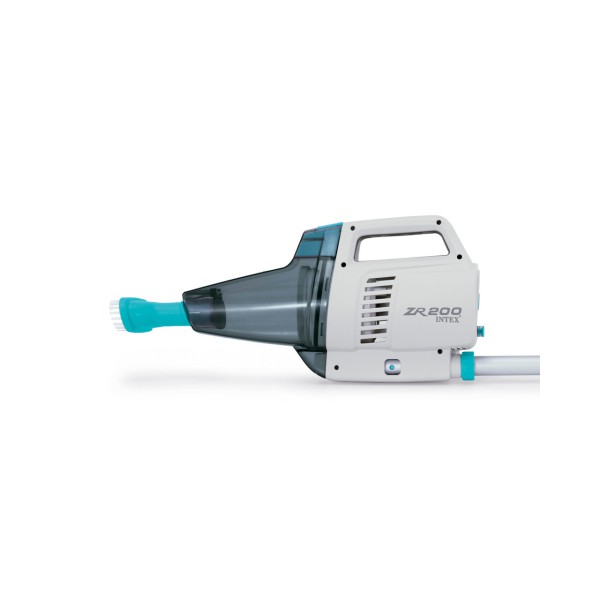 INTEX® ZR200 įkraunamas baseinų siurblys yra galingas akumuliatorinis siurblys, kuriuo lengva išvalyti bet kokį baseiną ir SPA. Šis praktiškas nešiojamasis povandeninis siurblys turi du valymo šepečius ir lengvą teleskopinę strėlę, pagamintą iš aukštos kokybės aliuminio (280 cm). Integruotas įkraunamas akumuliatorius turi įkrovos lygio indikatorių ir gali veikti iki 100 minučių. Akumuliatoriui įkrauti reikia maždaug 6 valandų.