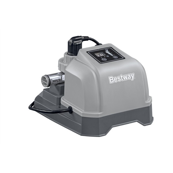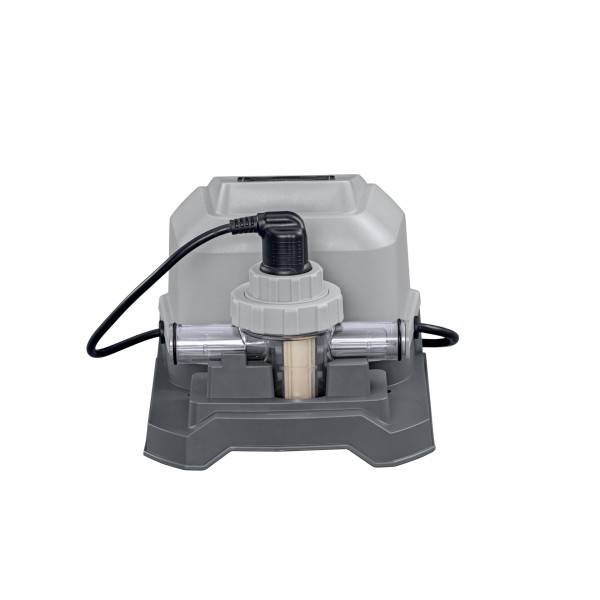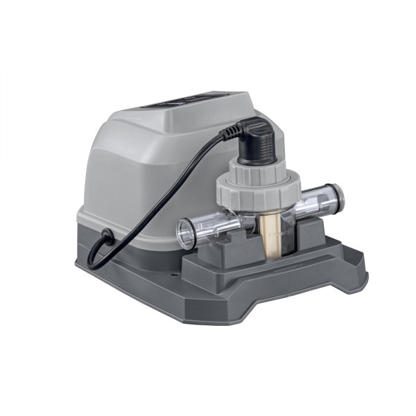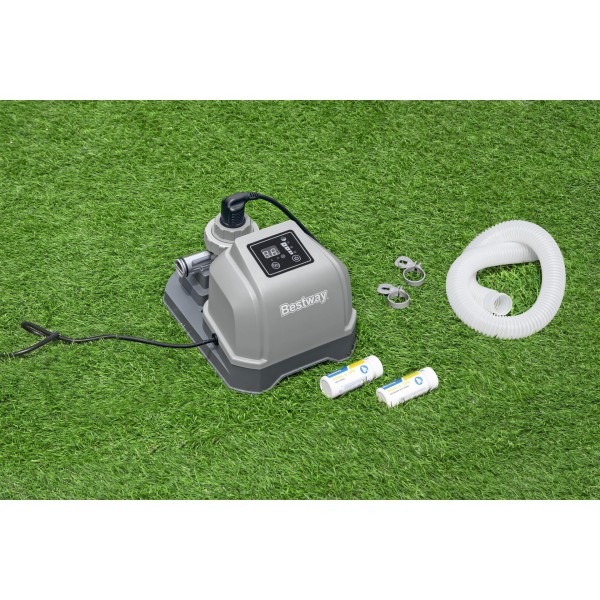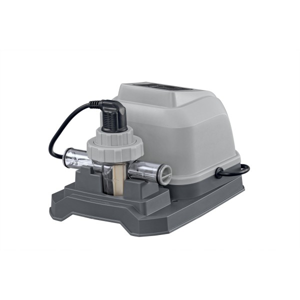 Naudodami jūros vandens chlorinatorių, išvengsite baseine esančių pavojingų mikrobų, bet tuo pačiu išsaugosite odą, akis ir plaukus. Naudodama pažangią technologiją, ši sistema paverčia druską nedideliu kiekiu bakterijas naikinančio chloro, kad jūsų baseinas išliktų krištolo skaidrumo. Be tiesioginio chloro pridėjimo į baseiną, su jūros vandens baseinu beveik nejusite jokio kvapo! Chlorinatorius idealiai tinka baseinams, kurių vandens tūris yra iki 8327 litrų, o srautas – nuo 1249 l/h.