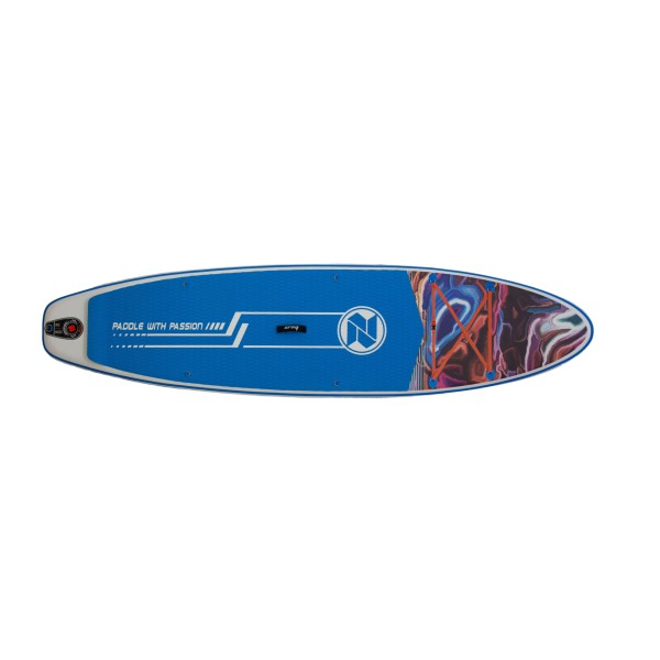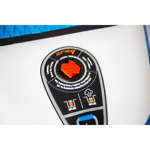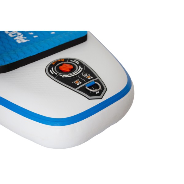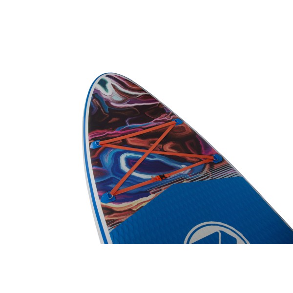 - Drop Stitch technologija: vidinė struktūra iš tūkstančių nailoninių siūlų leidžia lentai išlaikyti formą ir užtikrina kietumą, prilygstantį kietoms lentoms.