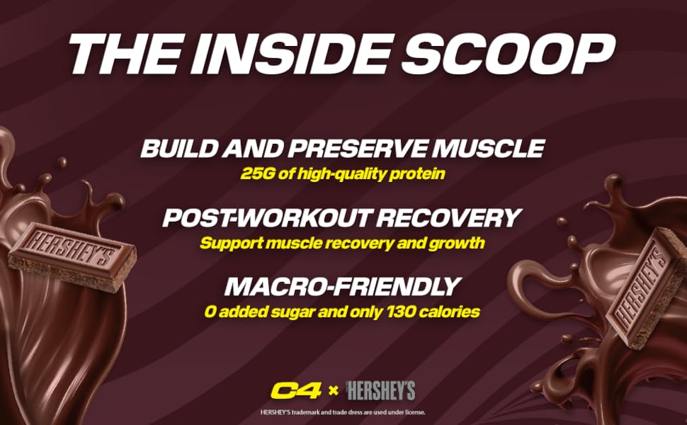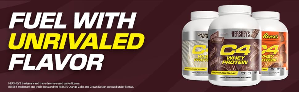 Pasimėgaukite klasikinio HERSHEY'S pieniško šokolado skoniu arba neprilygstamu REESE'S žemės riešutų sviesto ir šokolado deriniu. O jei ieškote švelnaus ir universalaus skonio – vanilės pupelės bus kaip tik jums. Pagerinkite savo sportinius rezultatus ir mėgaukitės šiuo procesu su C4® išrūgų baltymais.
