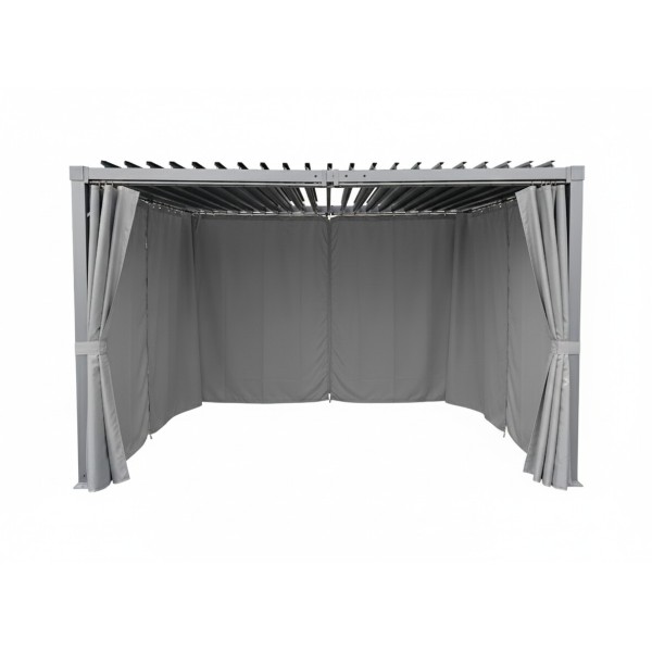 Sukurkite jaukumą ir privatumą savo poilsio zonoje su pilnu apsauginių užuolaidų rinkiniu. Skirta 3x3 m „Multi Climatic“ serijos pergoloms su plieniniu stogu.