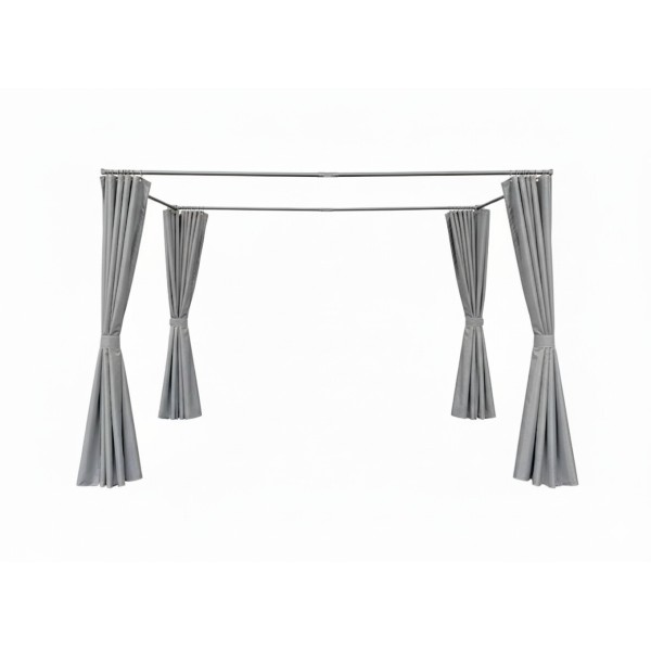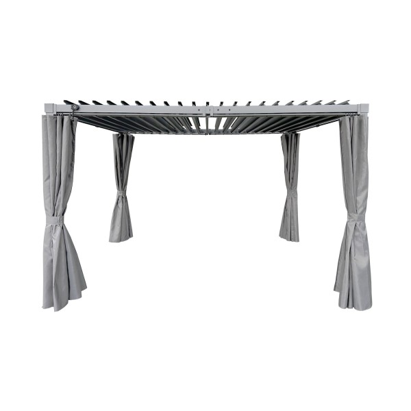 Sukurkite jaukumą ir privatumą savo poilsio zonoje su pilnu apsauginių užuolaidų rinkiniu. Skirta 3x4 m „Multi Climatic“ serijos pergoloms su plieniniu stogu.