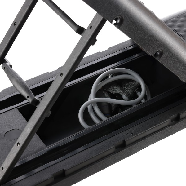 Stepe įrengta vidinė daiktadėžė, kurioje galima laikyti smulkius priedus – gumines juostas, šokdynes ar ekspanderius, kad viskas būtų po ranka.