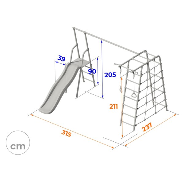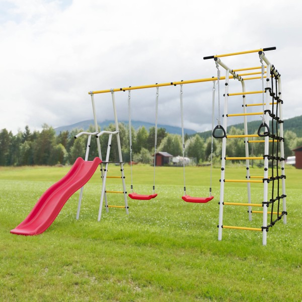 Naujos kartos SANRO HERO-1 PLIUS sporto kompleksas yra tikras atradimas aktyviems ir judriems vaikams. Puikus pirkinys vasarnamiui, vienkiemui ar privačiam sklypui. Mažasis nuotykių ieškotojas bus tiesiog patenkintas, o tėvai galės grožėtis, kaip vaikas auga, stiprėja ir virsta tikru didvyriu! Komplekse yra patogi ir saugi čiuožykla, šalia kurios yra sūpynės.Kitą komplekso dalį sudaro dvejos vertikalios ir vienos horizontalios gimnastikos kopetėlės, taip pat virvinis tinklas, pagamintas iš didelio stiprumo virvės. Visi priedai pagaminti iš oro sąlygoms atsparių medžiagų - vasarą juos galima palikti lauke. Nuotykis žada būti įdomus! Komplekso struktūra yra tvirta ir gali atlaikyti 100 kg. SANRO HERO-1 PLIUS yra puikus pasirinkimas tėvams, norintiems, kad šeimos nariai būtų užsiėmę aktyviais žaidimais gamtoje!
