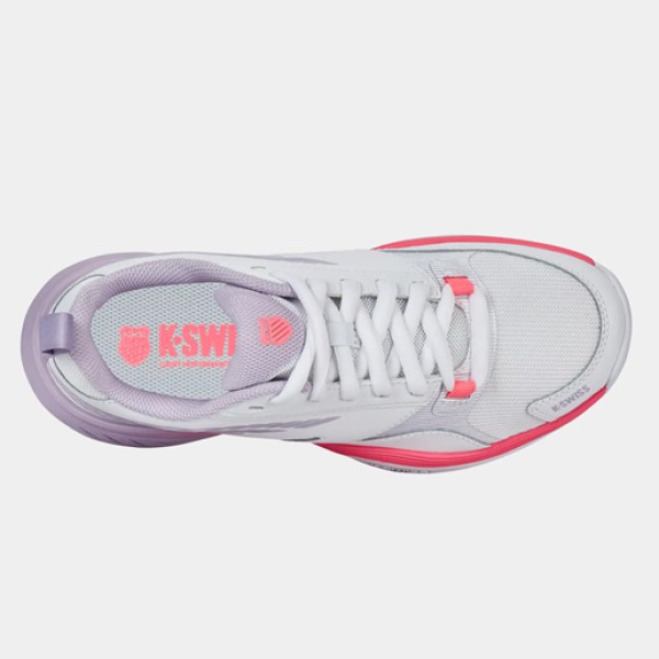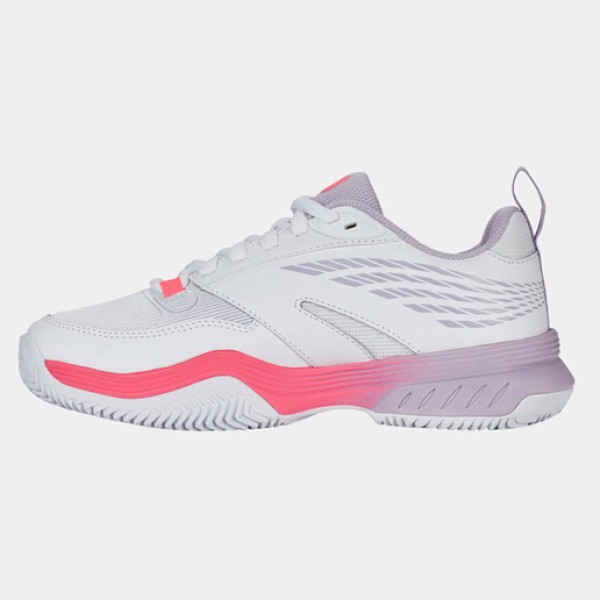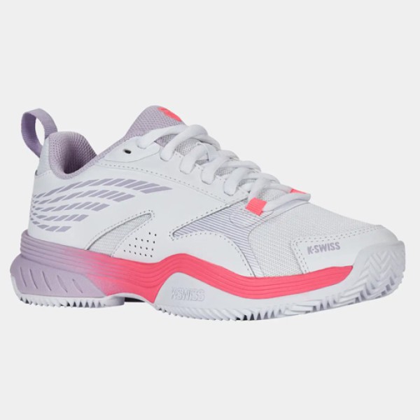 K-SWISS Speedex Clay – tai dinamiški teniso batai, sukurti žaidėjams, kurie aikštelėje vertina greitį, mobilumą ir elegantišką išvaizdą. Šis modelis su šviesiu, gaiviu baltos ir švelnios rožinės spalvų deriniu ne tik išsiskiria stilingumu, bet ir leidžia jaustis užtikrintai kiekviename žingsnyje.