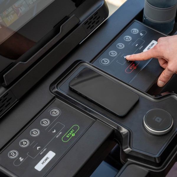 USB įkrovimas ir belaidis telefono kroviklis (15 W) – treniruokitės ir kartu įkraukite savo įrenginius.